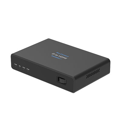 IP-декодер - это ключевое звено AV-over-IP-системы. Он принимает сетевые пакеты, "понимает" разные протоколы передачи видео и преобразует сжатый цифровой поток в стабильный HDMI-сигнал, готовый к выводу на монитор или видеостену.