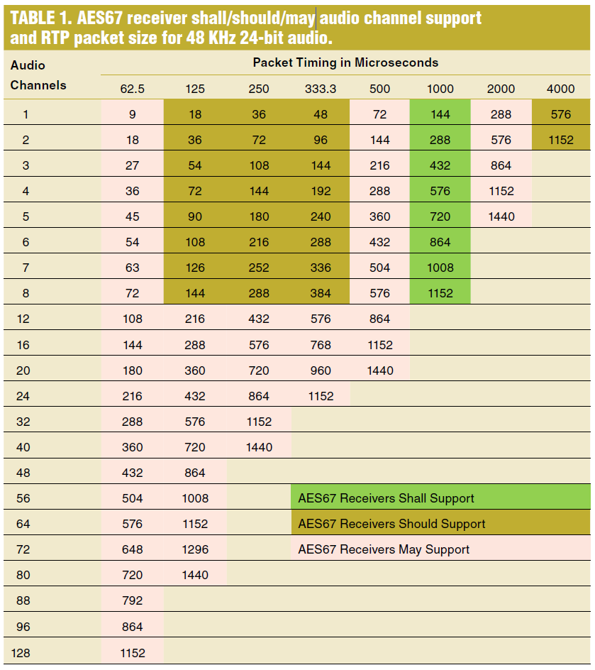 AES67, должны соответствоватьST 2110-30Уровень A. -